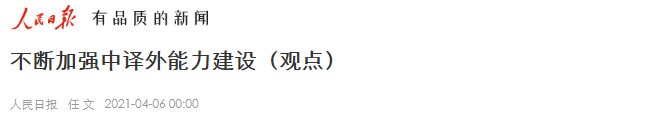 人民日报刊登冰球官网院长任文教授文章:不断加强中译外能力建设4月6日,《人民日报》国际版《观点》栏目刊登了北外MG冰球突破官网院长任文教授的文章《不断加强中译外能力建设》。文章指出,在中国文化走出去、提升中国文化软实力的过程中,应加强国家翻译能力中的中译外能力建设。文章指出,“讲好中国故事,展现真实、立体、全面的中国,提高国家文化软实力”回答了“为何译”的问题,在加强国家中译外能力建设、提升对外传播效...