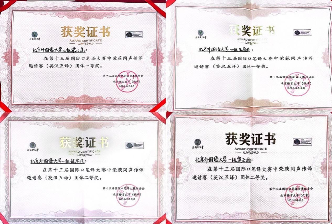 2025年5月24日,第十三届国际口笔译大赛同声传译邀请赛(英汉互译)决赛圆满完赛。冰球官网四名学生包揽团体冠亚军、个人冠季军,荣获一、二、三等奖。梁士虎(右)和王茂兴(左)同学荣获团体一等奖(冠军)徐宇恒(右一)和窦云瀚(右二)同学荣获团体二等奖(亚军)大赛由国际大学翻译学院联合会(CIUTI)、国际会议口译员协会(AIIC)和中国翻译协会(TAC)口译专业委员会支持,北京语言大学主办。本届大赛的主题为“人工智能与世界”...