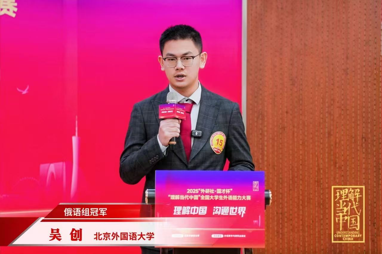 2025“外研社·国才杯”“理解当代中国”全国大学生外语能力大赛(多语种组)覆盖俄语、德语、法语等9大语种,历经校赛、省赛、国赛三个赛段,共有来自全国669所院校的2.6万学生参加,180名选手晋级全国总决赛。在一场场激动人心的竞技中,多语种组选手们用外语讲述中国发展变迁,展现多元文化风采,尽显理解中国、沟通世界的青春力量。