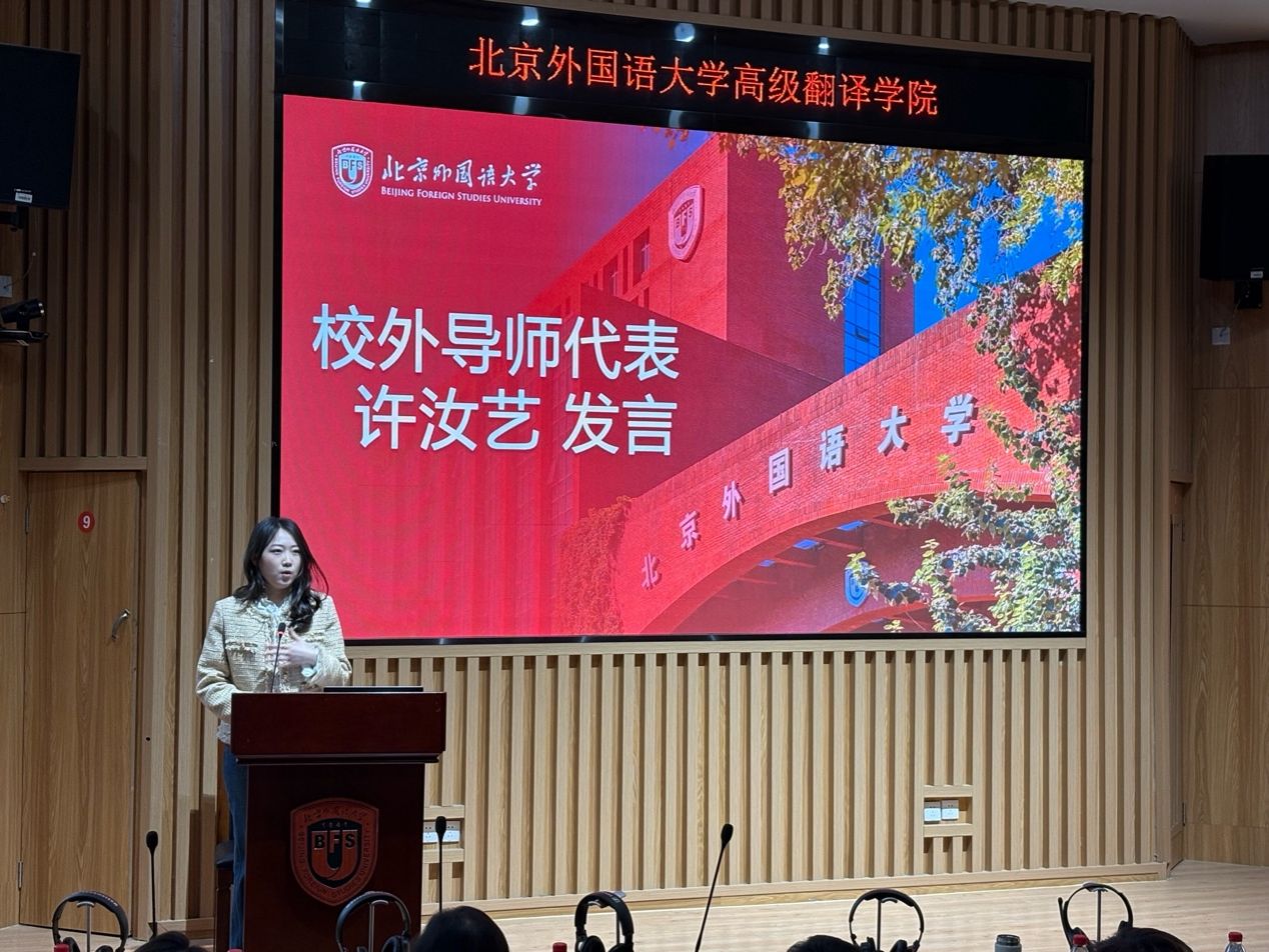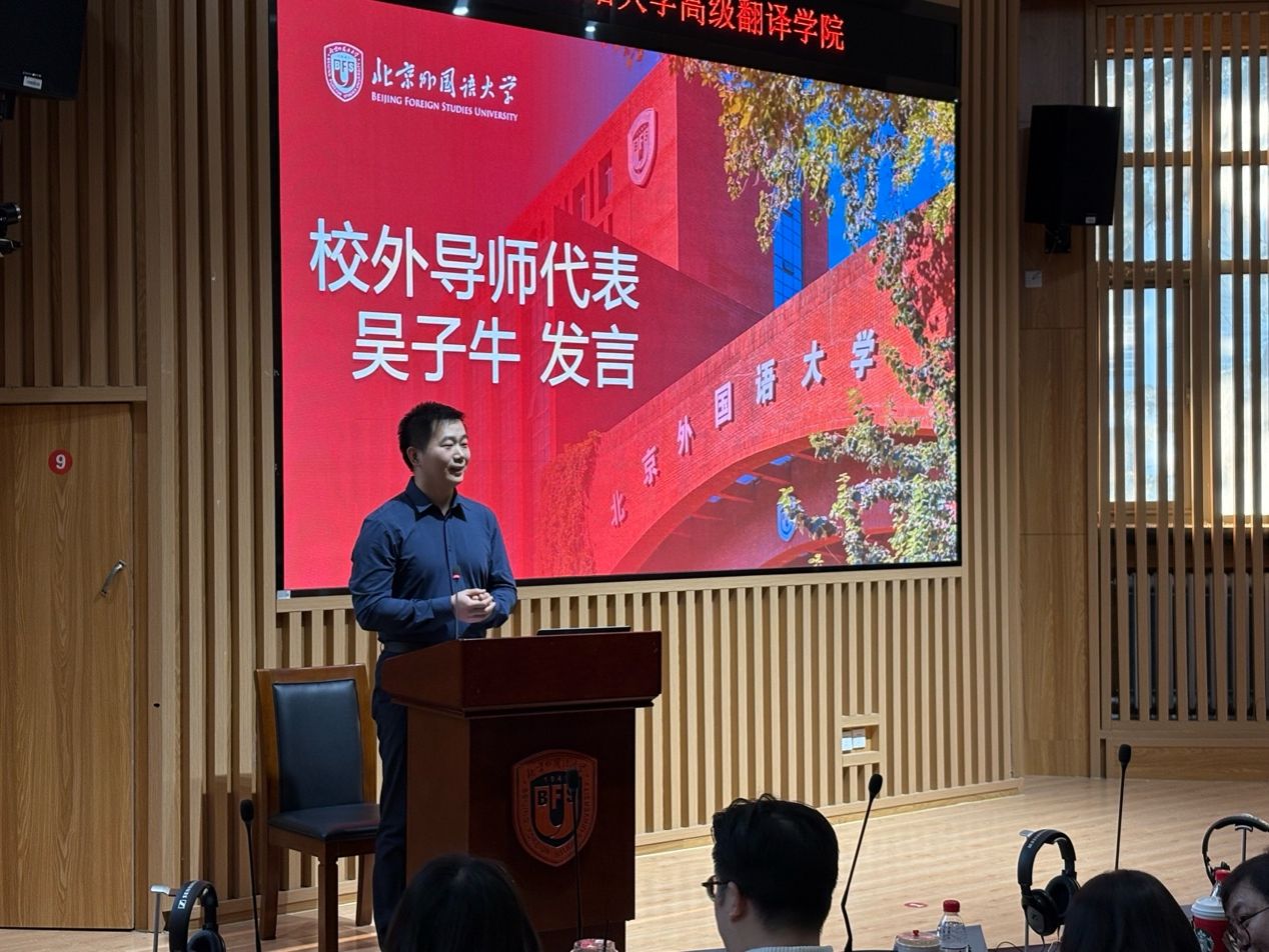 校外导师代表吴子牛、许汝艺先后发言,以“石头汤”与“天选媒体人”两个鲜活故事,向在场新生传递“时代容错率远高于想象”的信心,强调战略先于战术、翻译素养的迁移、树立端正的心态,希望以自身经验帮助学弟学妹们成长进步。