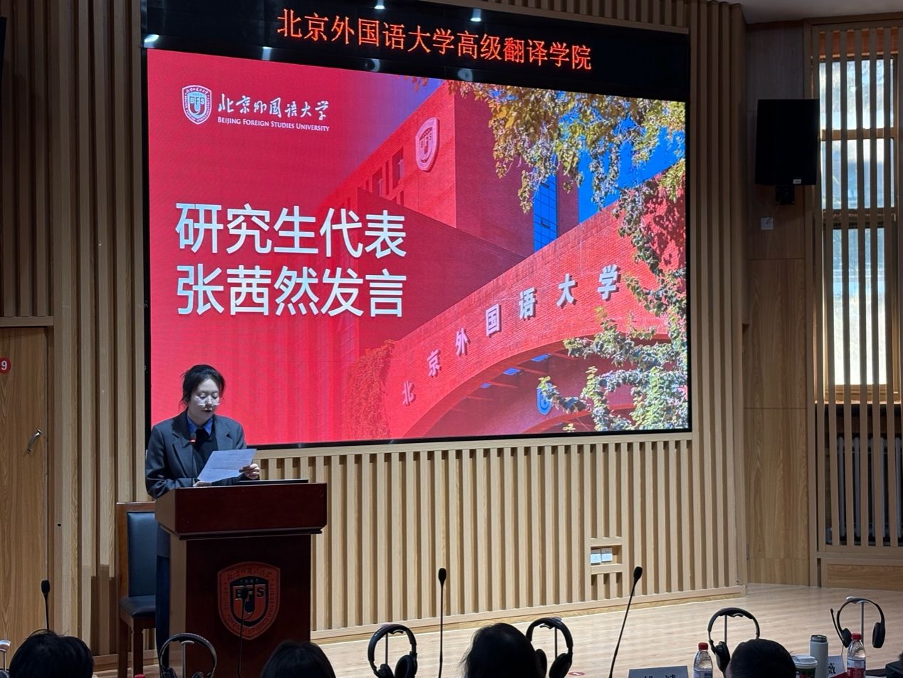 研究生代表2025级英语口译专业学生张茜然表达对学院搭建平台、邀请校外导师的感谢和对项目的期待与憧憬承诺以主动、虚心、踏实的态度参与项目努力实现“校内所学+校外所导”的结合与提升