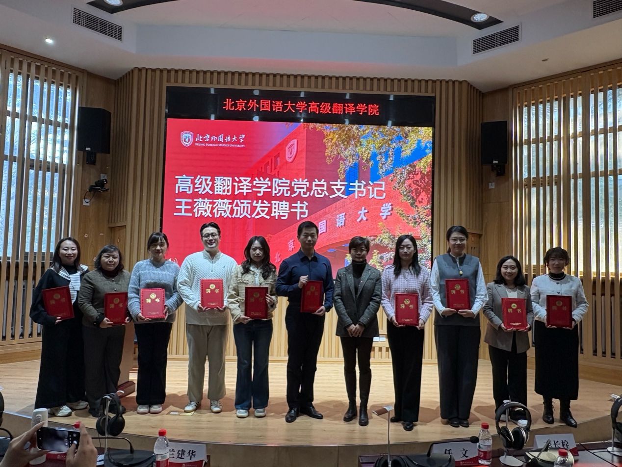 高翻学院党总支书记王薇薇为校外导师代表颁发聘书。