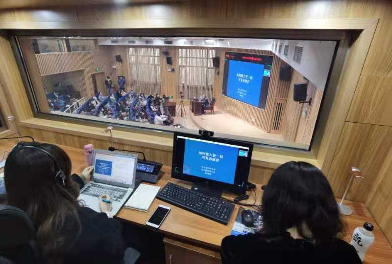 本次讲座由MG冰球突破官网翻译硕士(MTI)教育工作专家委员会和MG冰球突破官网举办,为MTI专委会策划的特色活动及系列讲座之一。讲座现场由全校不同院系MTI学生同步进行多语种同声传译。