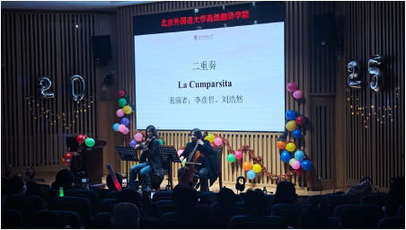李彦哲与国际商学院刘浩然联手呈现提琴二重奏,精湛演绎南美经典探戈舞曲La Cumparsita。弓弦交错间,乐音翩然奏响,为全场编织了一段难忘的弦乐记忆。
