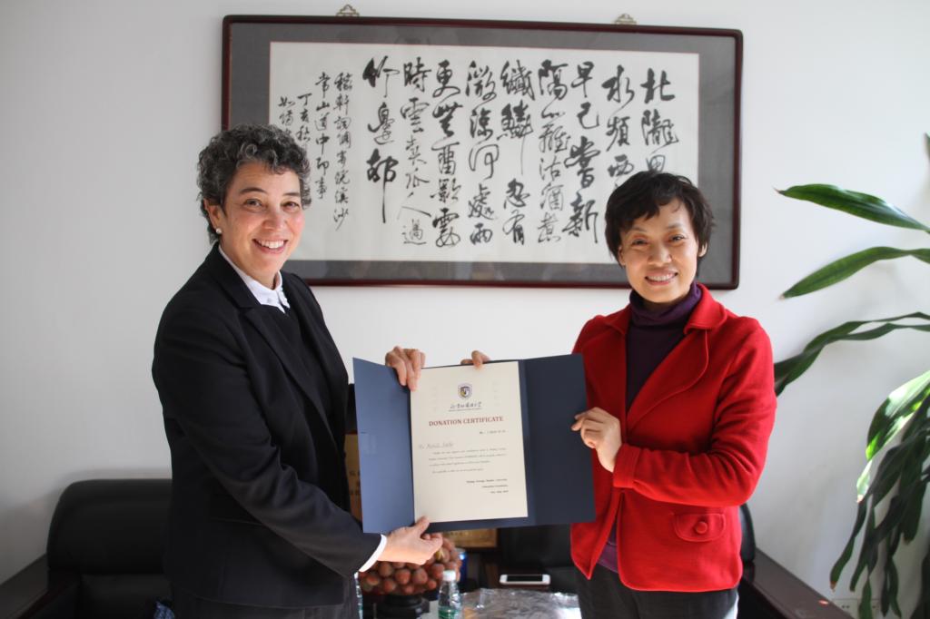 讲座结束后,Keating女士决定将此次讲座费用全数捐给高翻学院,用于资助贫困学生的学习。高翻学院党总支胡晓莉书记、高翻学院姚斌副院长、高翻学院博士生导师任文教授、冯爱苏老师、樊晶老师共同出席了捐赠仪式。