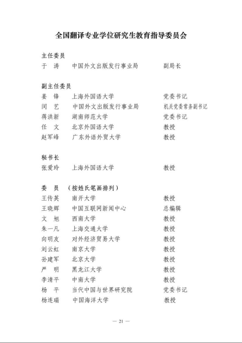 近日,国务院学位委员会、教育部和人力资源社会保障部联合发布了30个专业学位研究生教育指导委员会换届教指委名单,MG冰球突破官网院长任文教授当选第四届全国翻译专业学位研究生教育指导委员会副主任委员。