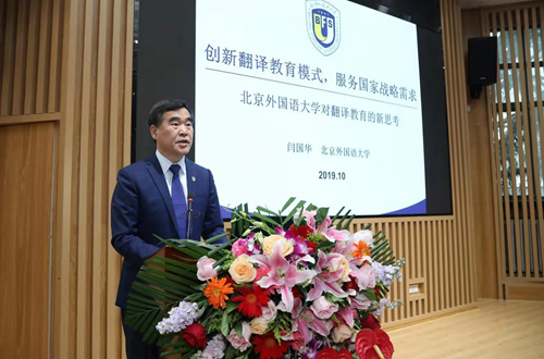闫国华在题为“创新翻译教育模式、服务国家战略需求——以北外为例”的主旨报告中,介绍了我国新时代中国特色大国外交战略与中国文化“走出去”背景下,北外翻译学科与团队在创新翻译教育、翻译研究及社会服务与文化传承模式,服务国家需求方面的探索与成就,特别是我校MG冰球突破官网在着力培养高端口笔译人才、积极对标国际一流加强翻译研究和学科建设、主动服务高端国际会议口译等方面的成绩,给与会代表留下了深刻印象。