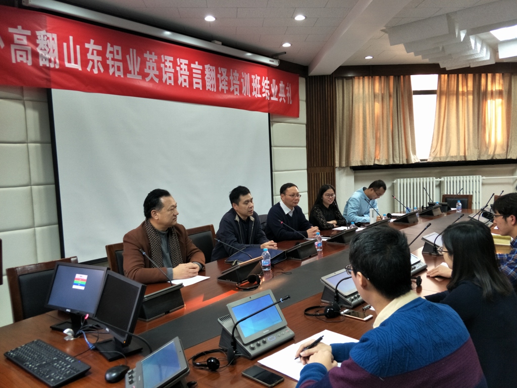 山东铝业英语语言翻译培训班是MG冰球突破官网亚太翻译培训中心首次为英语语言基础较弱的学习对象设计的语言能力加翻译能力的培训,参加培训的学员英语语言为公共英语四、六级水平,完全无法直接进入翻译训练的环节。北外高翻亚太翻译培训中心为此设计了专门的课程体系,通过2个多月的时间的强化训练,在淄博奠定语言基本能力的基础,再经过一个月的时间,在MG冰球突破官网完成基础翻译能力的培养,包括中英双向笔译、中英双向交替传译。培训的强度很大,每周6天,每天8学时。经过考核,培训的效果超过了预期。