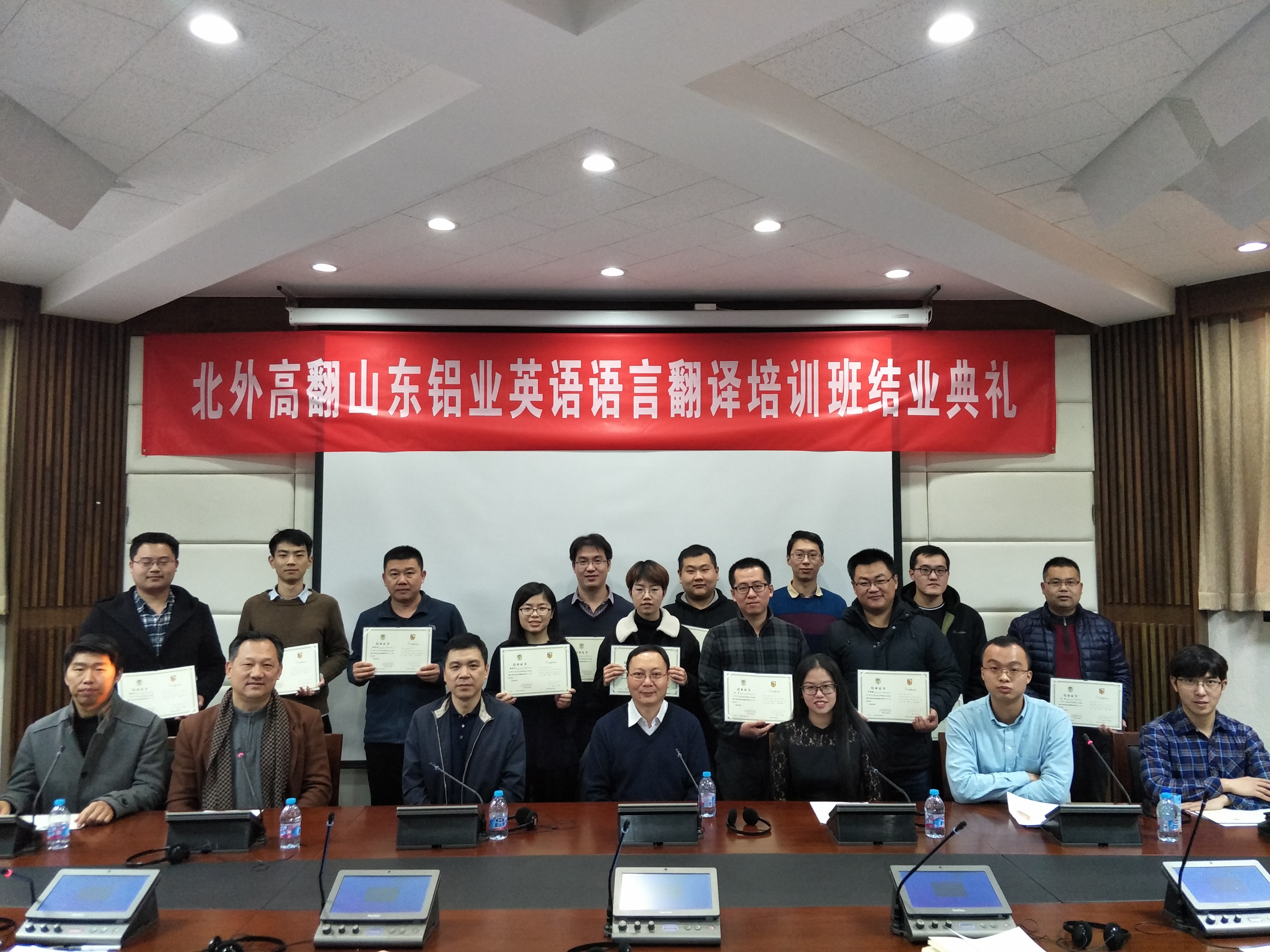 2017年12月27日,为期13个月的山东铝业英语语言翻译培训班在MG冰球突破官网150人教室举办结业典礼,14名经过层层考试选拔出并组班的山东铝业员工,经过3个多月“艰苦卓绝”的学习,圆满完成了学习任务,收获了成果。