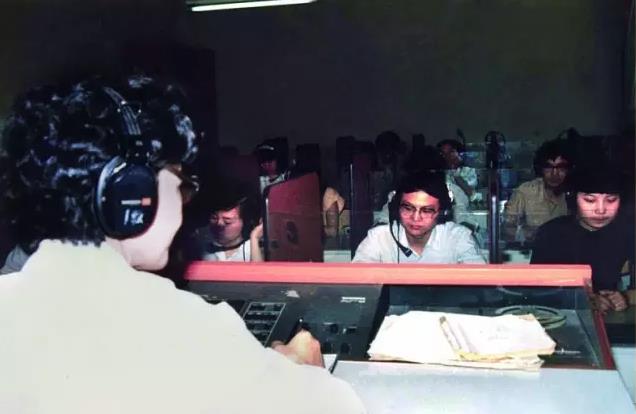 ▲老照片:北外学生在听录音