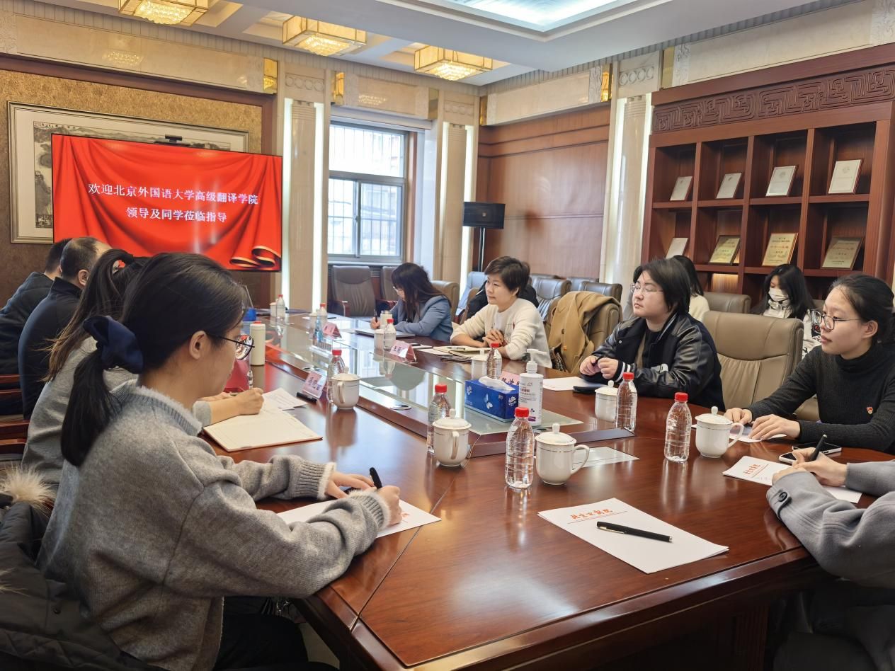 为深入学习贯彻习近平文化思想,推动中华优秀传统文化 走出去,12 月 10 日下午,高级翻译学院学生第二党支部北京京剧院开展红色“1+1”支部共建活动。学院党总支书记王薇薇、项目指导教师樊晶以及师生党员代表参加。北京京剧院副院长孙鹏、人力资源部主任王天东、演出部副主任冯晓蕾参加座谈。此次活动以京剧艺术为纽带,搭建起校院合作的坚实桥梁,为传统文化国际传播注入青年力量。