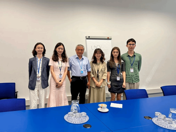 2025年6月29日-7月5日,依据MG冰球突破官网与联合国签署的合作协议,MG冰球突破官网2023级、2024级中英会议口译、翻译与国际传播方向的5名学生:范心茹、李佳盈、张景皓、陈正娴、周勤婧,在李娟娟老师的带领下,前往联合国维也纳办事处开展为期一周的同传口译实习。本次实习聚焦联合国和平利用外层空间委员会第68届会议和工业发展组织理事会,学生们实地观摩会议,参与同传哑箱练习,将平日所学技能在实践中锤炼,全方位感受国际组织语言服务的严谨与魅力。