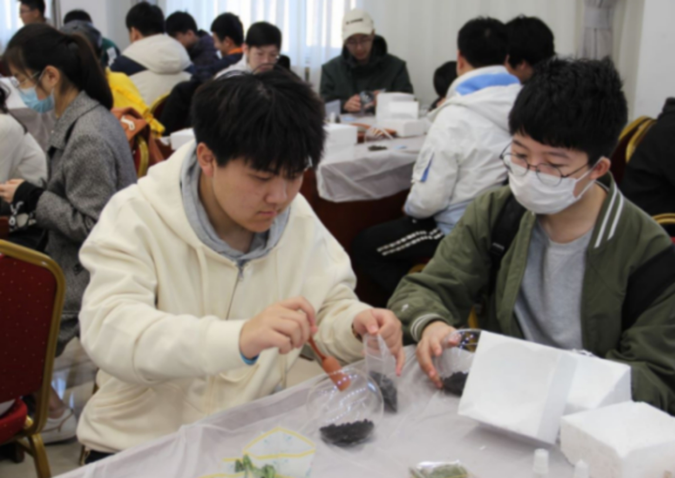 在活动结束时,每一位参与者都在工作人员的指导下制作了一份属于自己的多肉盆栽,这是对同学们育树劳动的一份纪念,也是对同学们环保意识强化的肯定。