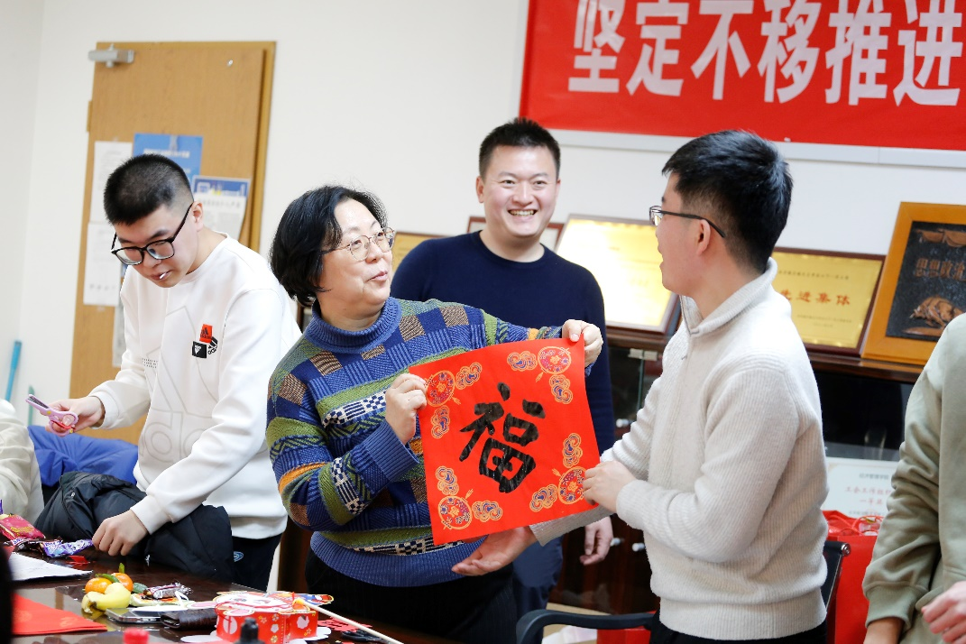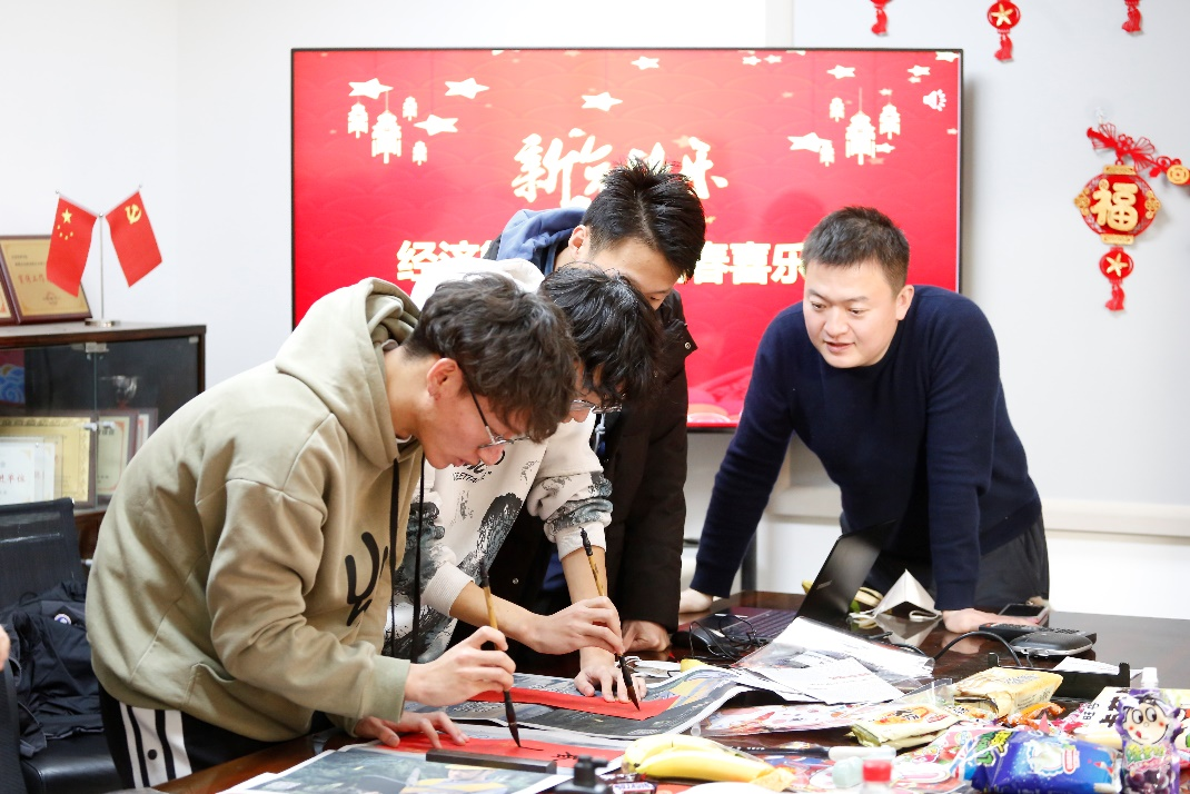 在“墨香四溢迎新春”主题活动环节,师生一起写春联、剪窗花、自制春节灯笼,“经世至善”“锦鲤附体”等一幅幅春联和大红的“福”字,表达了经管师生对学院和彼此的祝福。大家在浓厚的新年氛围中感受到了中国传统文化的魅力。学院还为寒假留校学生精心准备了“新春大礼包”,包含零食礼包、新春红包以及零食玩具盲盒,祝福同学们在新的一年里宏图大展、万事胜意。