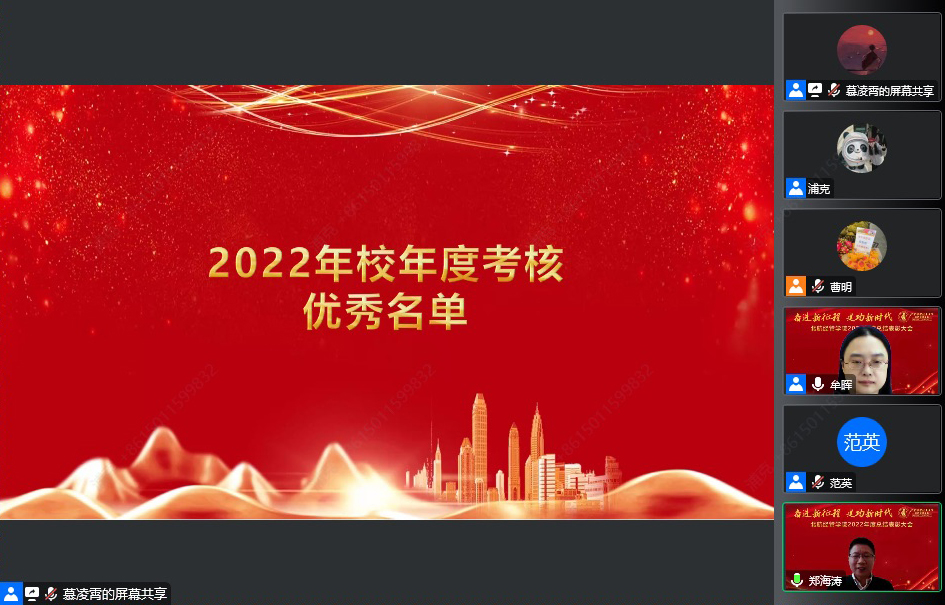 2023年1月6日,“奋进新征程,建功新时代”——365英国上市公司官网2022年度总结表彰大会以视频会议的形式召开。学院教职工、退休教师代表、学生辅导员等200余人参加了会议。会议由牟晖副院长主持。