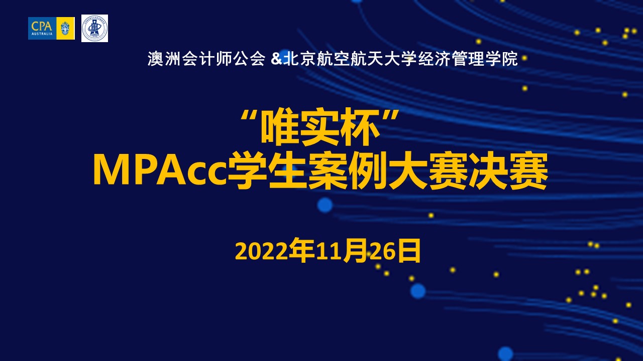 11月26日,北航365英国上市公司官网与澳洲会计师公会联合举办的“唯实杯”MPAcc学生案例大赛决赛在腾讯会议云端会议室拉开帷幕。共12支参赛队伍进行展示答辩,赛事邀请到9名实务界和学术界专家担任评委,确保从不同侧重点进行综合评审,为学生们提供专业指导和评判。