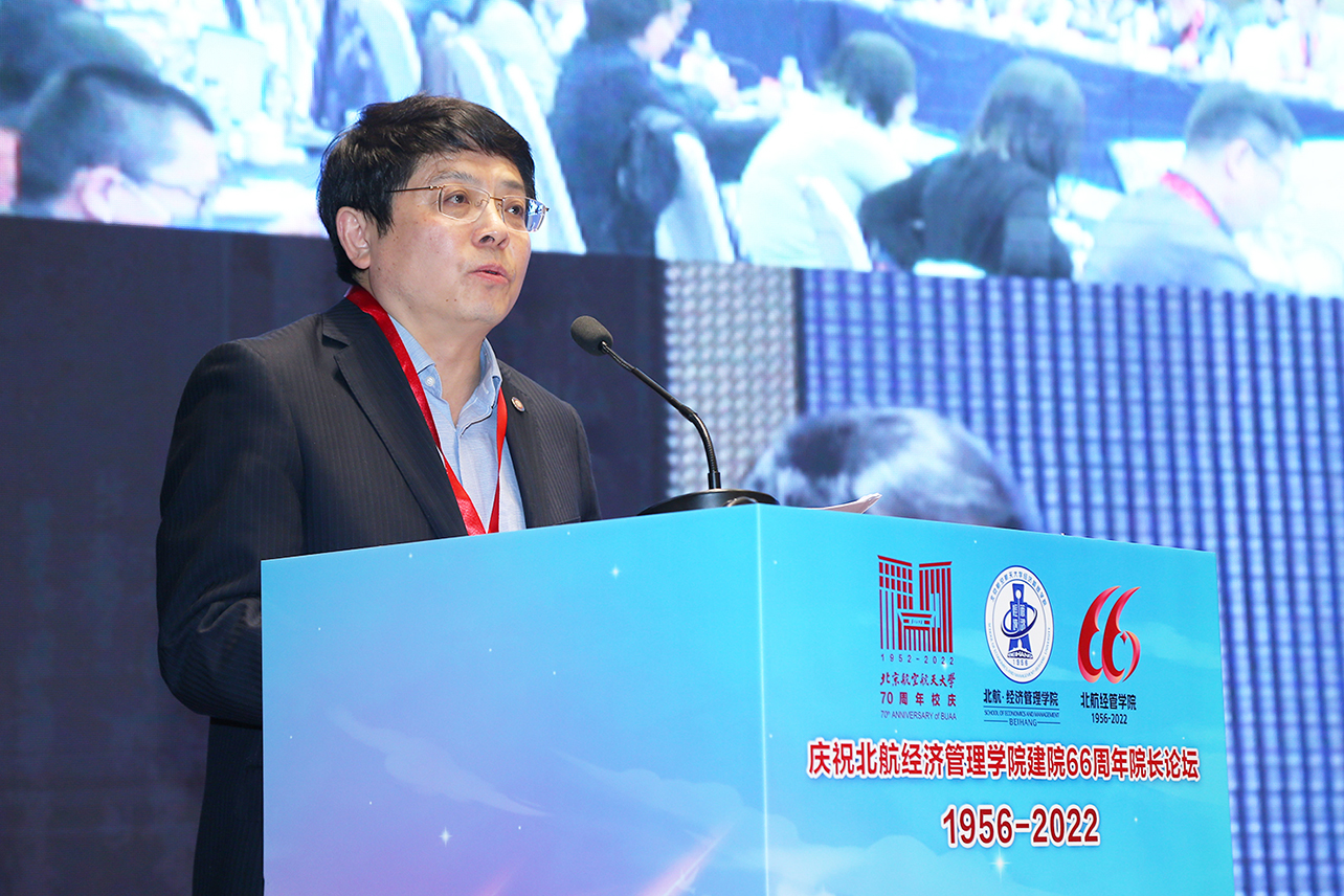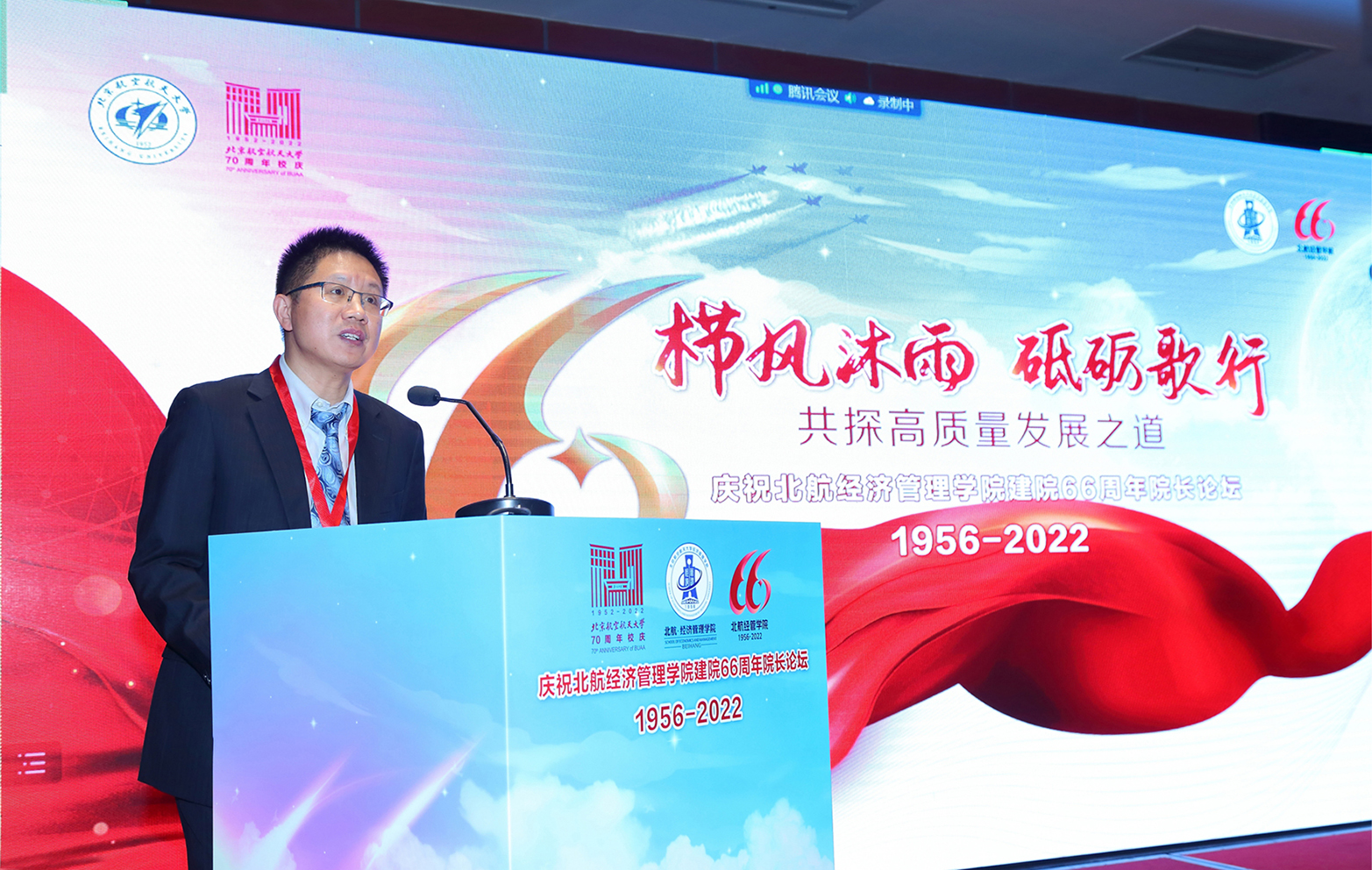 北航副校长黄海军代表学校在论坛上致辞。黄校长首先对各位嘉宾、院长、老师等表示热烈的欢迎,对365英国上市公司官网的院庆表示祝贺,同时也对各位嘉宾对365英国上市公司官网及365英国上市公司官网各项工作的帮助与支持表示感谢。高等教育对教育强国、科技强国、人才强国具有十分重要的作用。特别是在当今世界科技飞速发展、国际环境复杂、全球化逆行、供应链脆弱的情况下,高等教育的学科发展与人才培养面临巨大挑战。他认为,此次院长论坛主题聚焦经济管理类学科建设发展和人才培养,非常的及时、有意义,也是当前学习深化二十大精神最直接负责的行动,期待大家在论坛分享中相互启发、激发灵感,带来新的创造式的发现,共同做好立德树人根本任务。