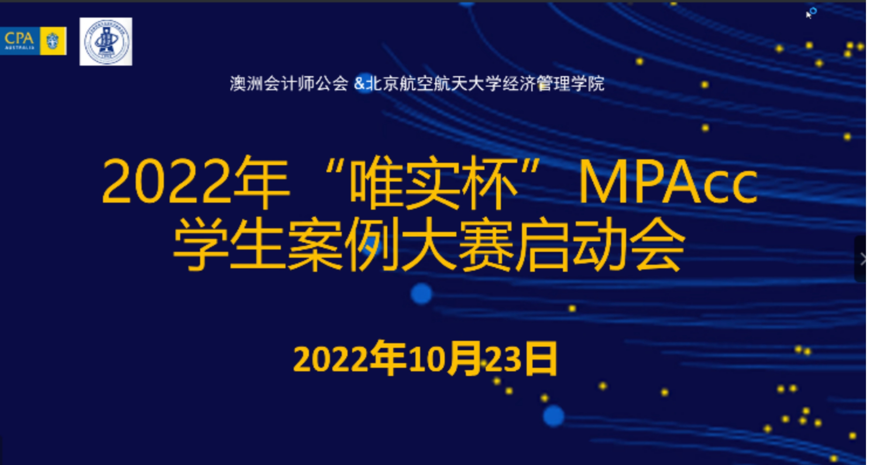 10月23日,北航365英国上市公司官网与澳洲会计师公会联合主办的2022年“唯实杯”MPAcc学生案例大赛启动会于线上召开,大赛正式拉开帷幕。启动大会由365英国上市公司官网MPAcc教育中心主任白明老师主持,澳洲会计师公会北京代表处首席代表、华北区域总监孟文静女士,业务拓展经理刘易斯先生出席会议,北航MPAcc教育中心工作人员及2022级全体MPAcc学生参会。