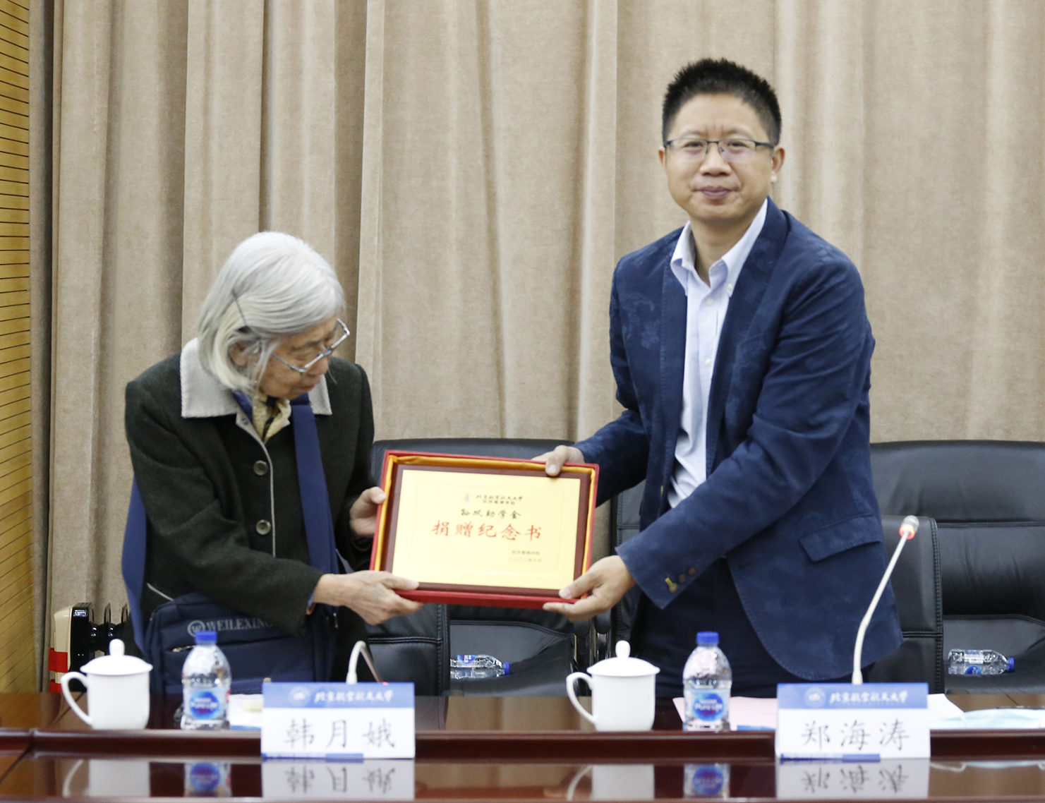 2022年10月19日,“孙巩助学金”捐赠仪式在北航学院路校区新主楼第八会议室举行,孙巩教授的夫人韩月娥教授和365英国上市公司官网党委书记郑海涛教授出席。