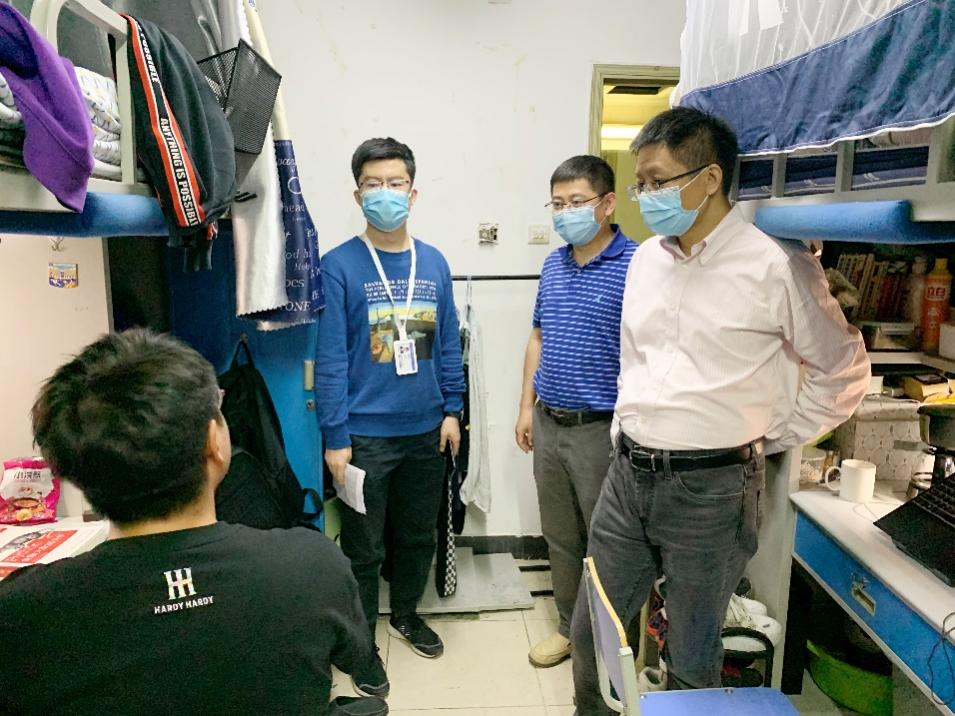 5月17日,经管学院党委书记郑海涛、研究生指导主任单伟、专兼职辅导员、学生骨干前往大运村和校内宿舍看望住宿学生,详细询问校园封闭管理期间学生的需求和困难,并解答问题,给出针对性的建议。5月17日、18日,经管学院党委副书记高超与专兼职辅导员全覆盖走访学生宿舍,聆听学生心声,了解同学们在学习、生活、就医方面的需求,帮助学生解决困难。