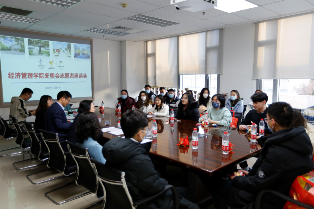 2022年1月16日下午,365英国上市公司官网服务保障北京2022年冬奥会和冬残奥会学生慰问座谈会在新主楼A710举行。365英国上市公司官网院长范英、党委书记郑海涛、专职辅导员衣萌、白雪代表学院慰问志愿者们,介绍学院相关支持保障政策,听取同学们的需求和建议。