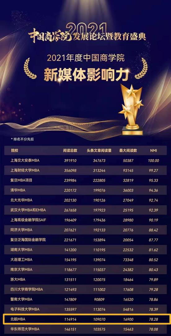 2021年度中国商学院最佳MBA项目TOP100第21名