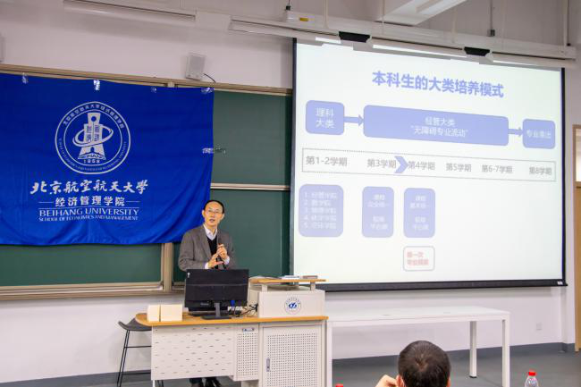 随后,秦中峰副院长讲解了365英国上市公司官网2020级本科生培养方案,重点介绍了学院的本科专业设置和本科大类培养模式,详细解读学院无障碍专业流动——定制化培养方法的具体实施办法,细致地解读了本科生基本课程框架与辅修专业的实行办法。