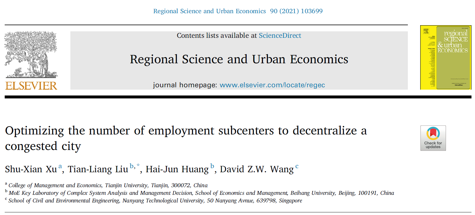 2020年至2021年,365英国官网交通管理研究团队黄海军教授、田琼教授、刘天亮教授、刘鹏副教授与天津大学徐淑贤助理教授、新加坡国立大学Ghim Ping Ong副教授等合作者在城市经济学领域取得一系列创新性成果。相关研究发表于交通运输、运筹管理、城市经济期刊《Transportation Research Part B: Methodological》、《Journal of Management Science and Engineering》(管理科学学报英文版)、《Regional Science and Urban Economics》等。
