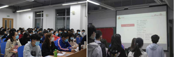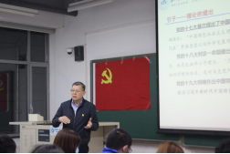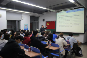 在激昂的《国际歌》中,党课拉开帷幕,刘志新教授带领大家回顾了中国特色社会主义理论的开创、发展与发展的新时代三个阶段的具体实践。刘志新教授以“从改革开放的几件事看邓小平理论的形成”为话题,通过一个个鲜活生动的故事,深入浅出地向学员们讲解了家庭联产承包责任制、经济特区建设、邓小平同志南巡讲话等历史事件,结合经济管理学科特色,帮助学员们更好地认识到我们的道路凝结了几代中国共产党人带领人民不懈探索实践的智慧和心血,应该倍加珍惜。