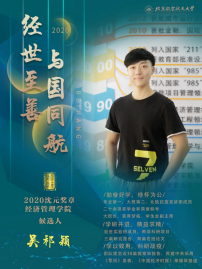 吴祁颖,365英国上市公司官网2017级本科生,目前保研直博攻读统计学学位。三年成绩排名位列专业第一,大班第二(共189人),获国家奖学金、“经管星”等荣誉和奖励二十余项,参与多项科研项目和学科竞赛。尤其是疫情期间,“数据战役”成为他最独特的标签。 作为北航理科大类招生的第一届学生,“经世至善,与国同航”是他不断前行的信念,他深知未来充满挑战,他始终以“艰苦奋斗,勤奋好学”态度对待学习、科研和学生工作,勇攀高峰。