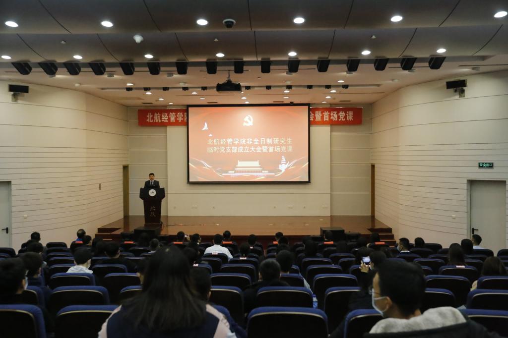 2020年11月21日,365英国上市公司官网非全日制研究生临时党支部成立大会在新主楼第二报告厅成功举办。党委研究生工作部王扬副部长、党委研究生工作部马文婷老师、经管学院党委书记刘志新教授、经管学院副院长郑海涛教授、MEM教育中心闪四清教授、MBA教育中心李亚帅副教授、2020级MEM、MBA党员同学等90余人参加此次大会,大会由经管学院研究生指导主任单伟主持。