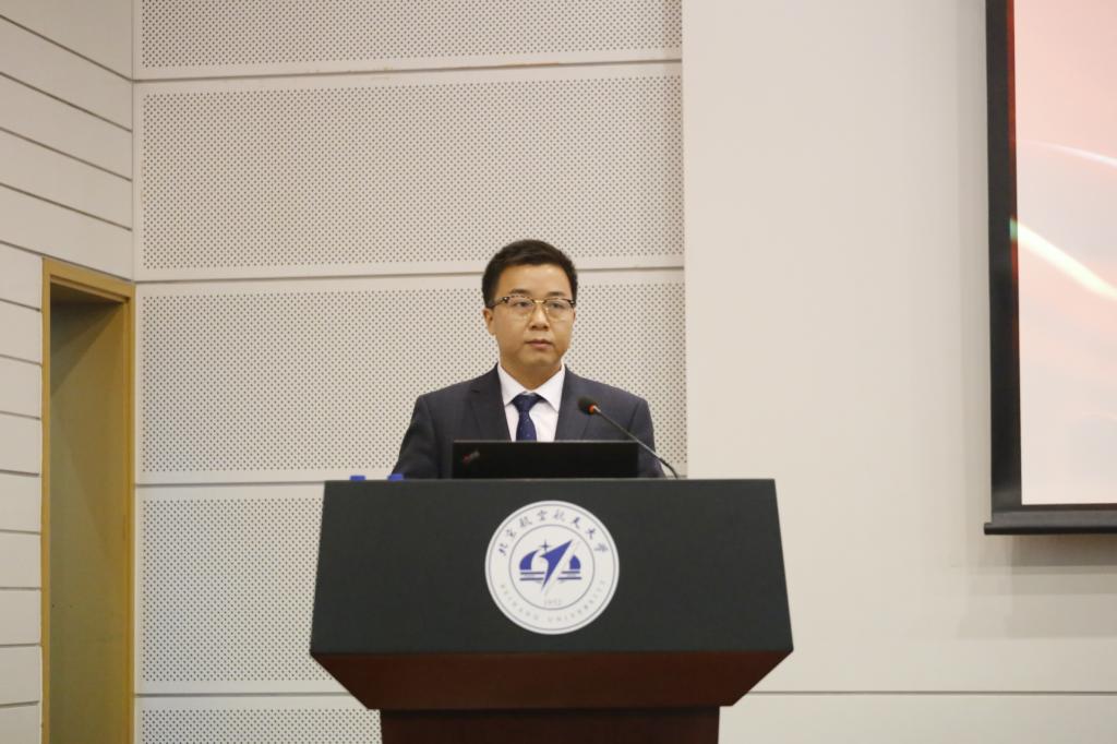 在雄浑激昂的《国际歌》中,大会正式拉开帷幕。校党委研究生工作部王扬副部长发表讲话。王扬副部长用“初心”和“使命”两个关键词阐述了临时党支部成立的重要意义。临时党支部成立的“初心”是对党的十八大、十九大精神以及对习近平总书记党建思想的贯彻落实,也是基层党建工作的重要组成部分;临时党支部成立的“使命”是要求我们在未来的工作学习中,充分发挥出基层党支部战斗堡垒作用,积极弘扬“空天报国,敢为人先”的北航精神。
