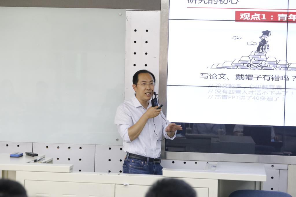 吴俊杰副院长以自己的科研经历为引,从研究的初心、研究的价值、开展研究的模式等方面进行了科研分享,勉励在座的新进教师要不忘初心,坚守方向,只做真正有用的研究,并形成有体系、有活力的成果和个人标签。