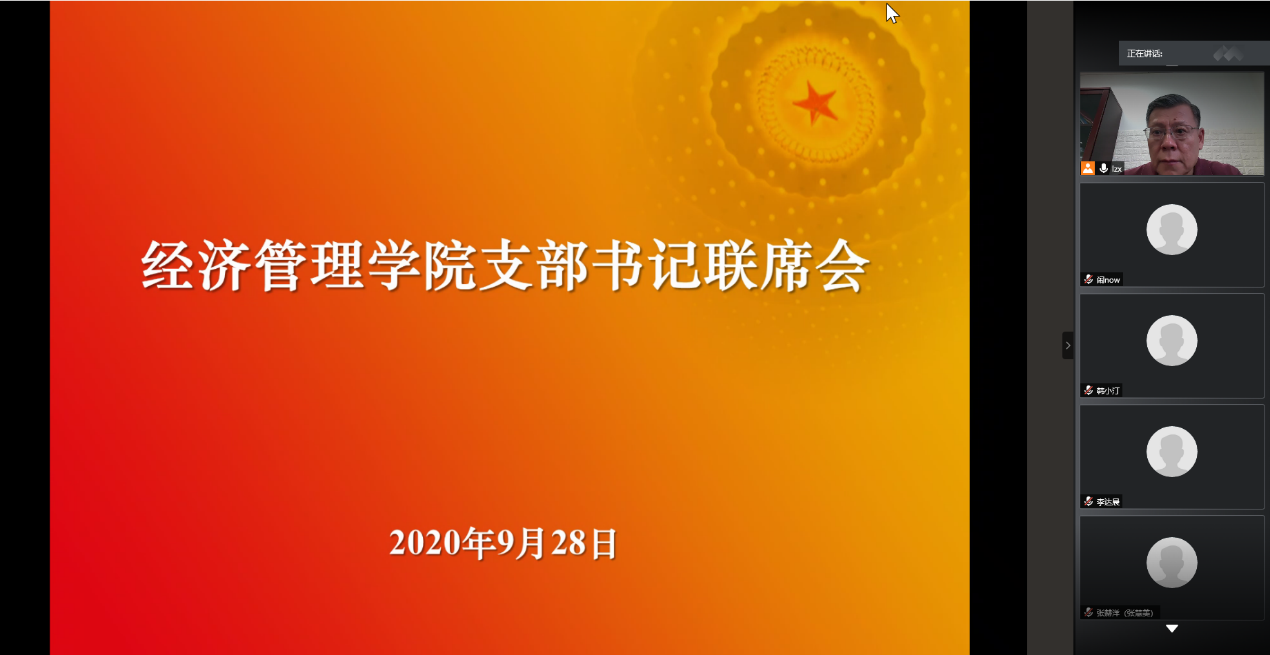 2020年9月28日下午4时,365英国上市公司官网召开支部书记联席会,传达学校分党委书记联席会精神并组织集中学习,学院分党委书记刘志新主持会议,全体师生党支部书记、学生工作负责人和专职组织员40余人参加会议。