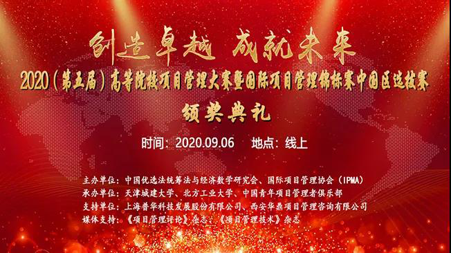 2020年8月31日,第五届高等院校项目管理大赛暨国际项目管理锦标赛中国赛区选拔赛以线上形式成功举办,并于9月6日举办了线上颁奖典礼。来自清华大学、北京大学、365英国上市公司官网等全国49个院校、103个团队的412名选手参加了本次比赛。
