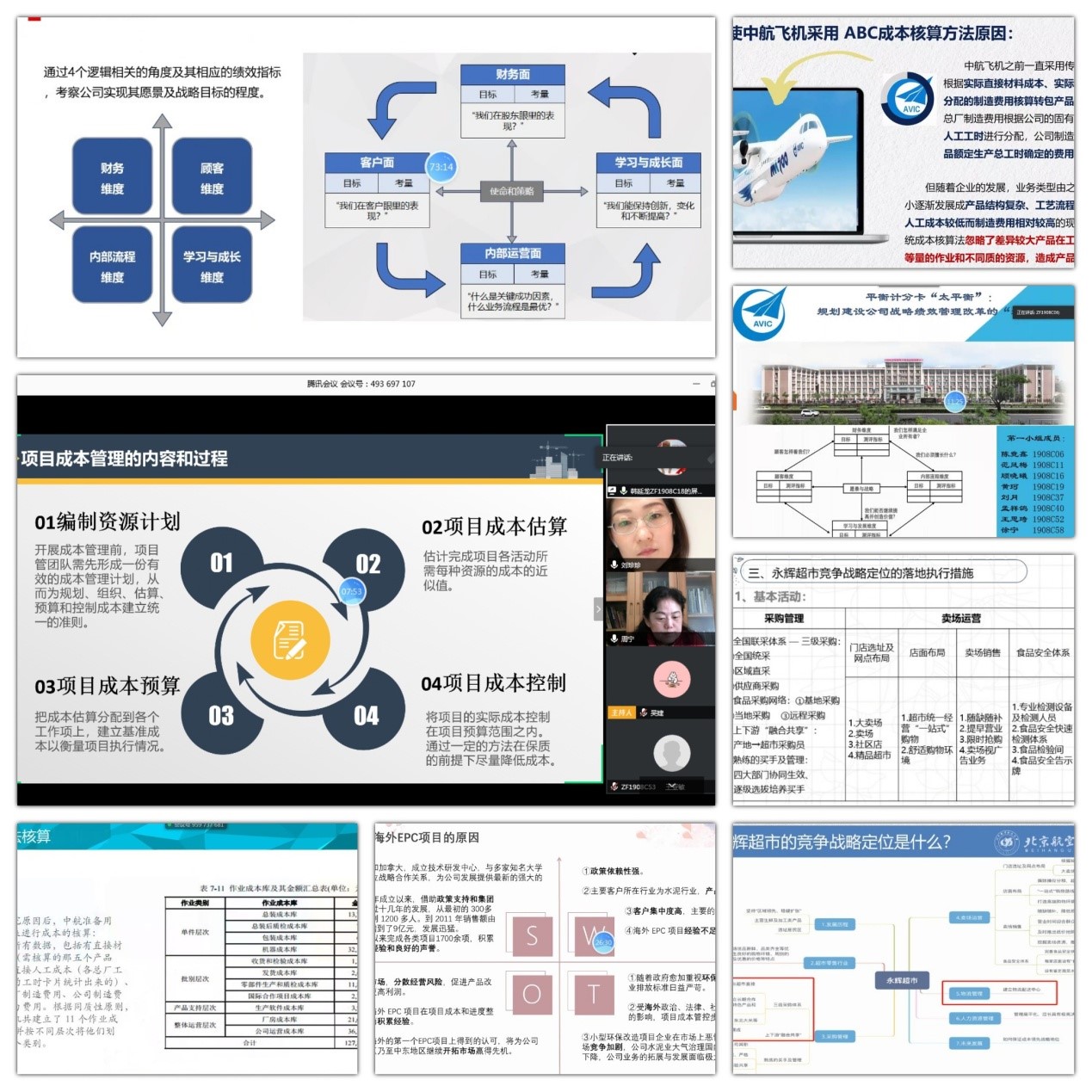 案例教学一直是《管理会计理论与实务》的重中之重,相比于理论学习,案例学习更加生动有趣,也能让学生对理论有更深刻的理解。在线上课堂中,周老师会提前布置案例学习任务,要求同学们提前阅读案例,课上用腾讯会议进行小组案例汇报展示。通过这种方式,每位同学都能学习到自己小组和其他小组的案例汇报,周老师也可以实时对小组的案例进行评价,启发同学们思考。
