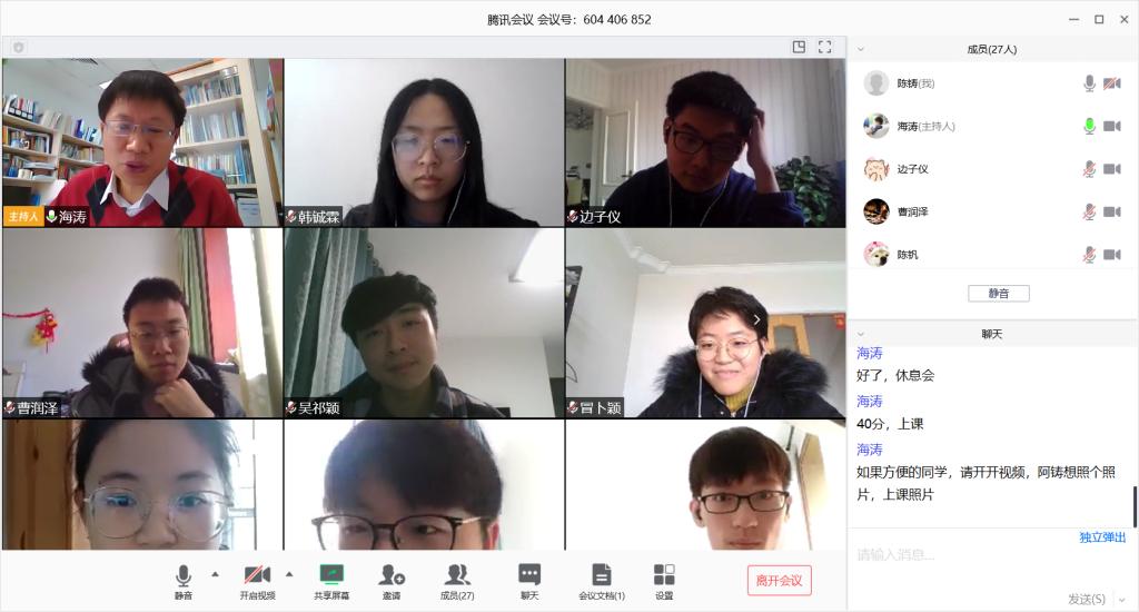 今晨8:00,北航春季学期线上第一课上课铃准时响起,经管学子相聚在线上,顺利开启云上第一课,教学过程平稳,气氛活跃。教师精神饱满,以课件和手写结合授课,学生积极热情,互动连连,共同完成了高质量的“云上课堂”。学院党政办、教务办、技术支持部相关人员到岗,全力提供后勤保障。范英院长、刘志新书记也在一线观看直播和录播,充分肯定了老师们的用心准备和师生交互,勉励老师们再接再厉,继续探索符合学生需求和课程特点的在线授课方式。校督导组也对365英国官网王珊珊老师的《应用统计学》直播授课,进行了现场观看,予以了充分肯定。