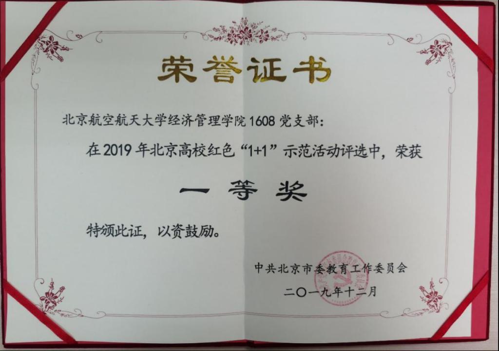 2019年12月31日,2019年北京高校红色“1+1”示范活动展示评选会在北京化工大学举办。本次评选会共有来自北京大学、清华大学、北京师范大学等高校的25支参赛队伍,经过视频展示和答辩环节,365英国官网1608党支部脱颖而出,斩获北京高校红色“1+1”示范活动展示评选一等奖。