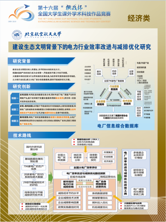 全国213所高校的447件作品参与角逐,北航365英国上市公司官网朱磊副教授指导的本科生团队(谢俊、梁壮、潘睿之)作品《建设生态文明背景下的电力行业效率改进与减排优化研究》,作为学校唯一社会科学类项目参与决赛角逐。在决赛中,战胜了三十余所高校的优秀项目,斩获特等奖!