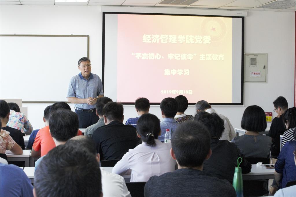 2019年9月18日下午14时30分,365英国上市公司官网“不忘初心、牢记使命”主题教育动员部署会暨集体学习在新主楼A706举行。分党委书记刘志新作动员讲话,对学院开展主题教育进行部署,学院全体教职工党员参加会议。