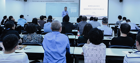 会上,刘志新书记带领大家学习了学校近期出台的《教师职业道德规范》、《教师师德失范行为预防与处理办法(试行)》的文件。他指出,高校教师不仅要有扎实的学识,还要有高尚的道德情操,有坚定地理想信念,有博大的仁爱之心,教师在教学、科研工作中真正做到以学生为中心。他强调,学院将按照学校工作要求,严格落实师德失范“一票否决制”,以高要求规范教师履职尽责,同时创新师德教育方式和手段,切实增强师德教育效果。他希望,每位教师认真领会,抓好贯彻落实,充分认识开展师德师风教育活动的重要性和必要性,增强教书育人的责任感和使命感。
