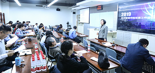 会上,范英院长作了学院年度主要工作报告,结合学校工作要点,全面分析和客观剖析学院发展面临的形势和要求,对2019年度学院工作任务和工作重点进行了解读和部署。报告内容包括:坚持抓好政治建设,扎实推进经济管理一流学科建设,完善高水平人才培养体系,强化师德师风,突出科研特色优势,推进信息化和宣传,健全一流管理服务,开创全面从严治党新局面。与会人员围绕报告内容,对标工作任务,结合学院实际,就2019年度主要工作进行了充分的交流研讨,进一步集思广益、凝聚智慧。