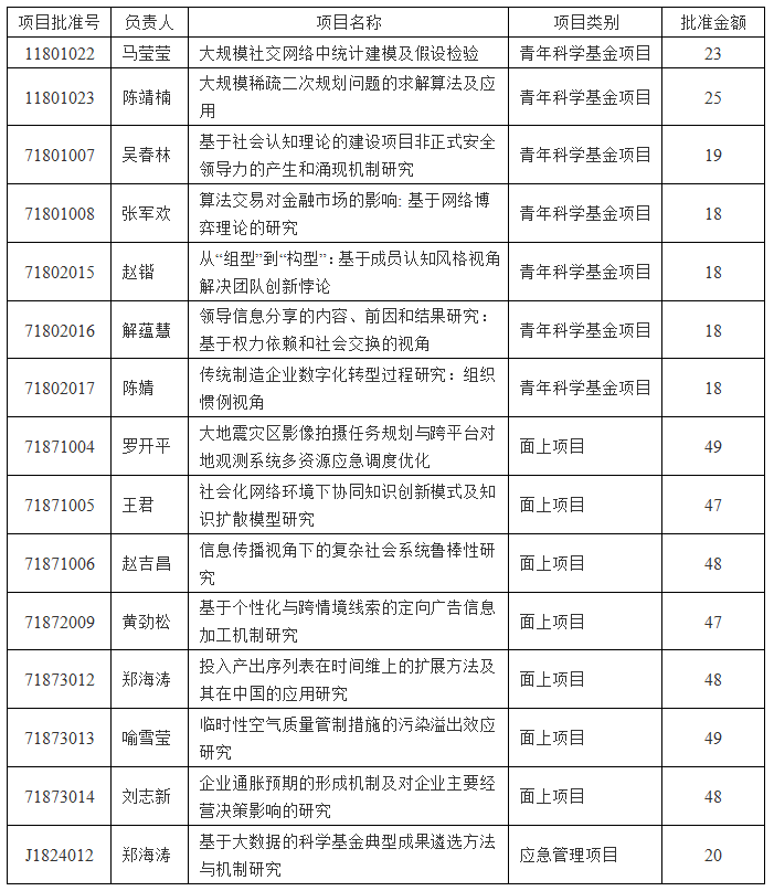 2018年度国家自然科学基金集中申报期间,365英国官网申报工作稳步进行,目前已经圆满完成,全院共申报各类项目34项,获批15项,总体资助率44%。获资助金额495万元。再次向获得资助的教师表示祝贺,现将各类项目公布如下: