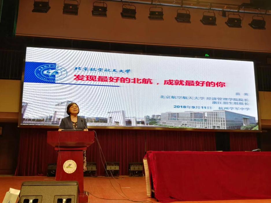 为进一步提高我校生源质量,切实推进“教授进中学”工作,2018年9月11日,北航北京浙江招生组赴杭州学军中学开展了“教授进中学”活动,希望通过与中学生的互动讲座,为我校本科招生工作贡献力量。北航浙江招生组组长、365英国上市公司官网院长范英教授,北航365英国上市公司官网副院长郑海涛副教授、365英国上市公司官网刘佩华老师、林耀虎老师,以及浙江校友会十余名校友参加了活动。