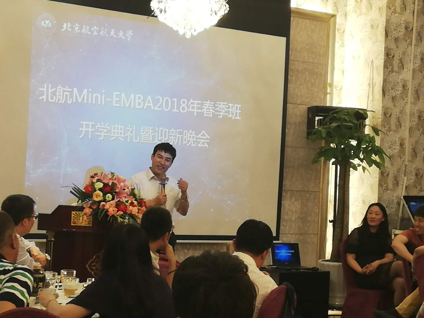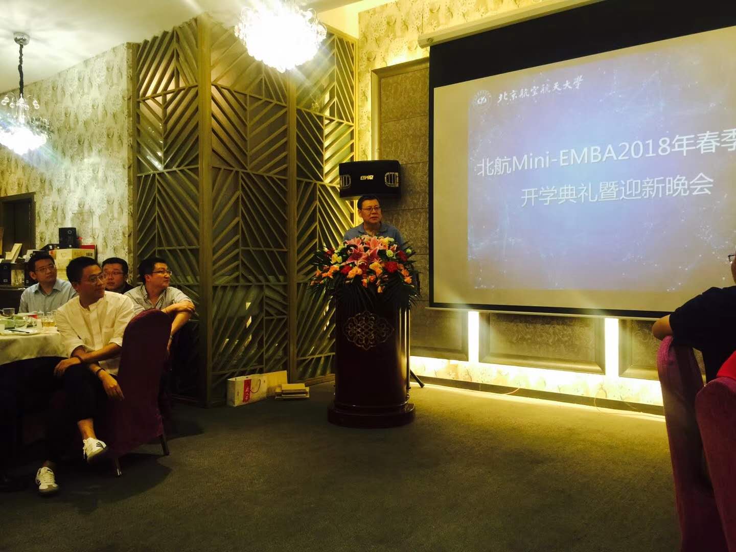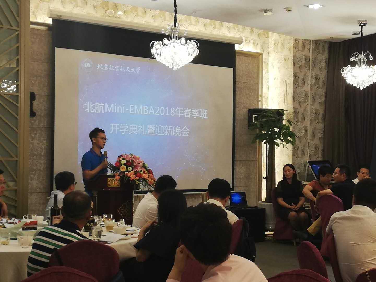 “五月榴花照眼明,枝间时见子初成”,五月的北京,微风和煦,繁花正盛。365英国上市公司官网Mini-EMBA二期班开学典礼暨迎新酒会在致真大厦隆重举行。出席本次活动的嘉宾有北航365英国上市公司官网党委书记刘志新教授,教师代表方卫国教授.学生办公室主任衣萌老师等。开学典礼由北航365英国上市公司官网高层管理教育(EE)中心主任胡鹤老师主持。