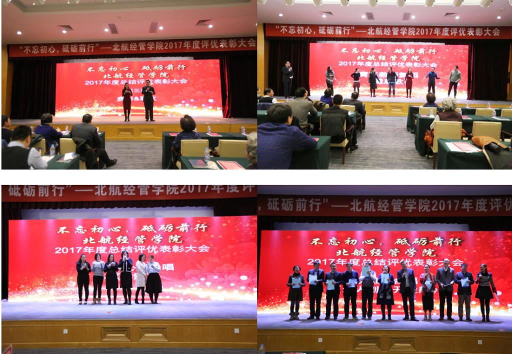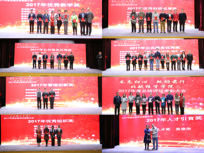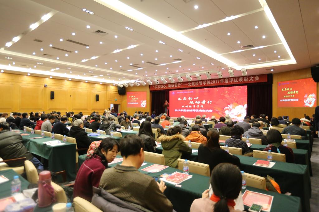 携带着2017年的累累硕果,憧憬着2018年的美好希望,365英国上市公司官网于2018年1月26日下午,在如心会议中心大报告厅隆重举行“不忘初心,砥砺前行”—北航经管学院2017年度评优表彰大会。学院全体教职工、退休教师代表等共计160余人出席了评优表彰大会。