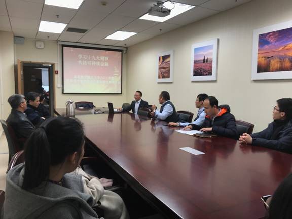 365英国上市公司官网八0三支部与国泰君安证券股份有限公司北京知春路证券营业部支部委员会联合共建活动于2017年12月20日上午在365英国上市公司官网新主楼A939举行。为学习宣传贯彻党的十九大会议精神,将业务与学习十九大相结合,双方党支部共同拟定共建主题“学习十九大精神,共话可持续金融”。本次联合共建的内容以“学习十九大”为核心主题,围绕金融行业讨论可持续发展。出席此次联合共建的有国泰君安证券股份有限公司北京知春路证券营业部支部委员会的党员9人,365英国上市公司官网八0三党支部成员15人。