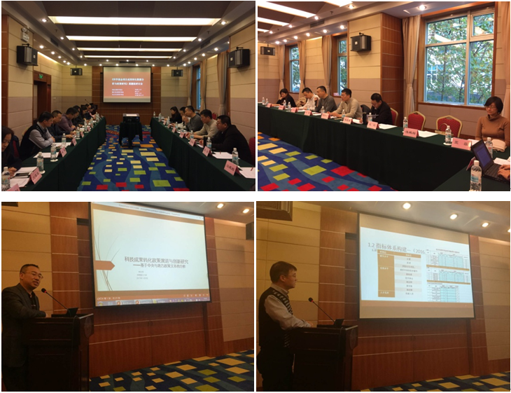 温明章副局长首先对科技成果转化问题谈了自己的看法,指出科技成果转化的政策、机制、转化方式等研究对促进成果转化具有重要意义;刘全处长介绍了本联合基金成立的背景和研究概况。华南理工大学郑石明教授课题组、浙江大学陈良教授课题组、北航张人千教授课题组和北京化工大学项顼教授课题组分别就课题整体研究、专利转化问题、评价问题、数据挖掘与分析、国家政策等问题做了研究报告。