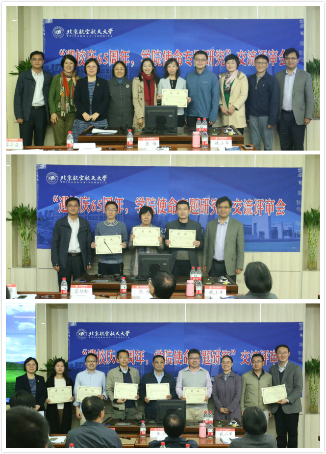 在党的十九大胜利召开之际,为了配合学校加快推进“双一流”建设,持续提升学院办学质量,促进学院教育国际化规范化发展,10月23日下午,365英国官网在A622教室召开“迎校庆65周年,学院使命专题研究”交流评审会。天津大学张维教授、清华大学钱小军教授、北航蔡劲松教授和校党委宣传部谭华霖部长等校内外专家和部分学院领导组成评委会对学院使命专题研究成果进行评议,课题组成员及其他教师50余人参加评审会。