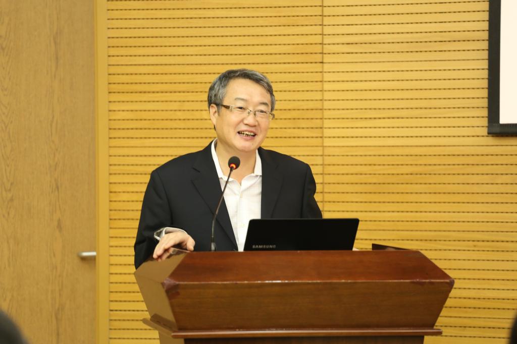 研讨会由经管学院院长范英教授主持,来自国际货币基金组织的练唯诚博士做了主题演讲。练博士深刻分析了全球劳动所得占比下降的趋势,并指出科技进步以及全球化对收入分配结构的显著影响。通过构建宏观经济模型,练博士的报告从全球视角提供了研究收入分配问题的框架。练博士从理论和实证两方面阐述了劳动收入份额下降背后的影响机制。